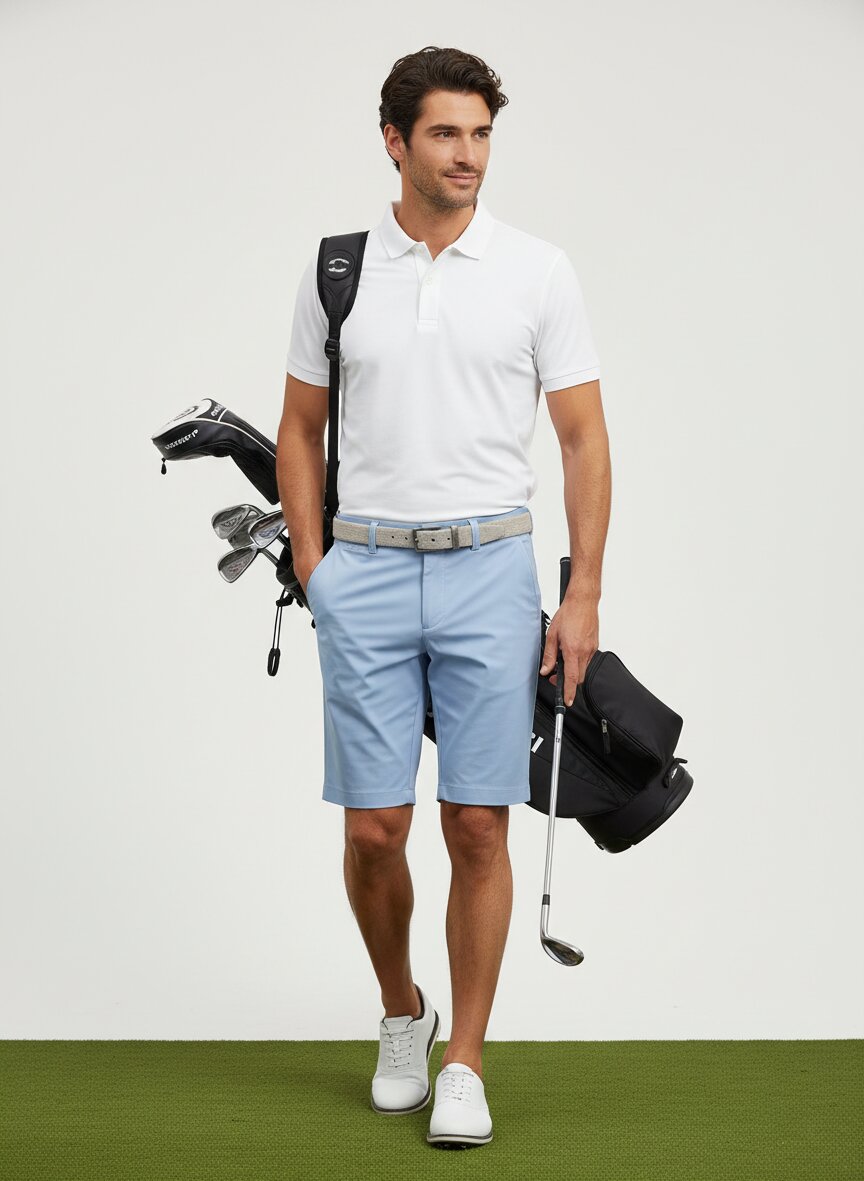 Golfhose kurz mit seitlichen Eingrifftaschen, rechts mit Tee Holder und Gesäßtaschen, Innenbund und rechte Gesäßtasche mit Antirutsch-Tapes