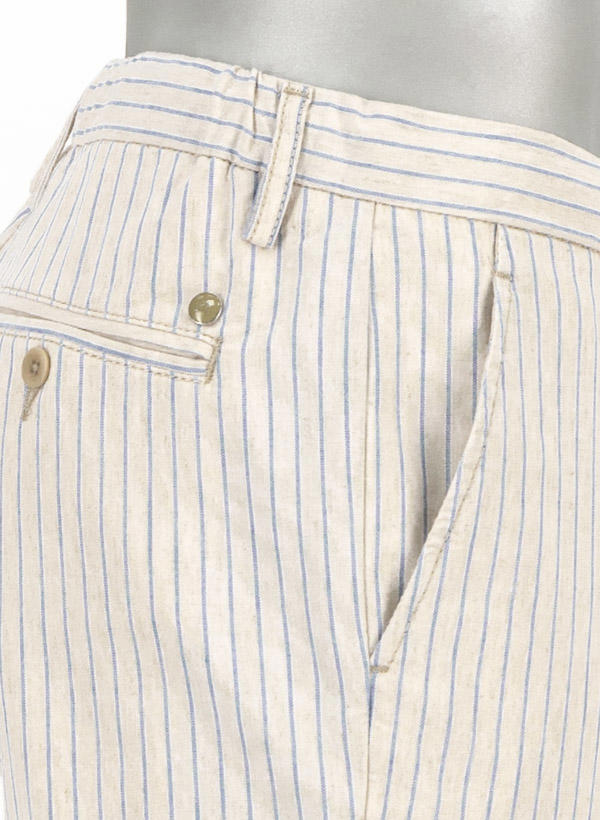 Hose Jump, Baumwolle-Leinen, ecru-blau gestreift