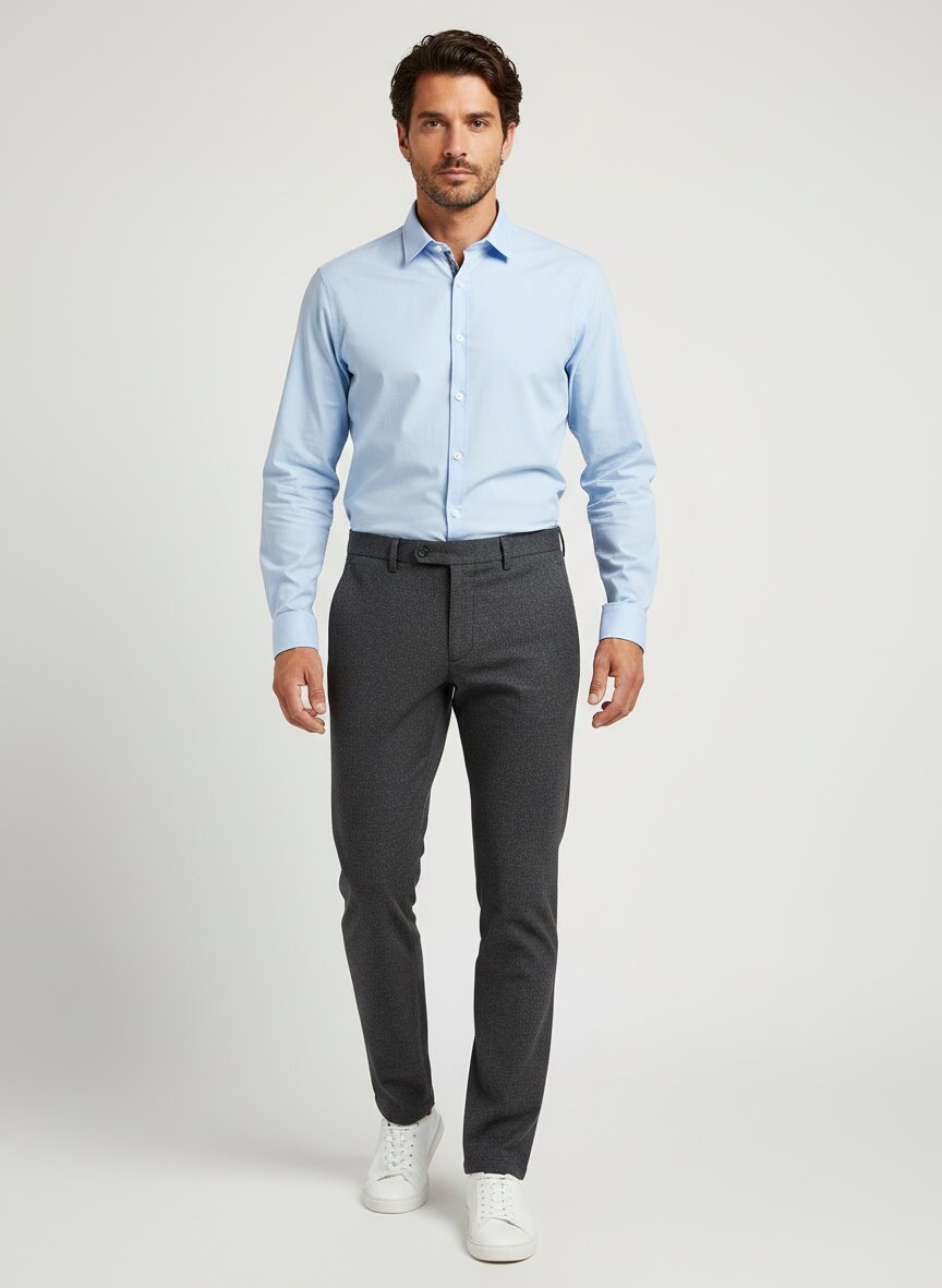 Grau melierte Baumwoll-Chino mit dezenter Struktur