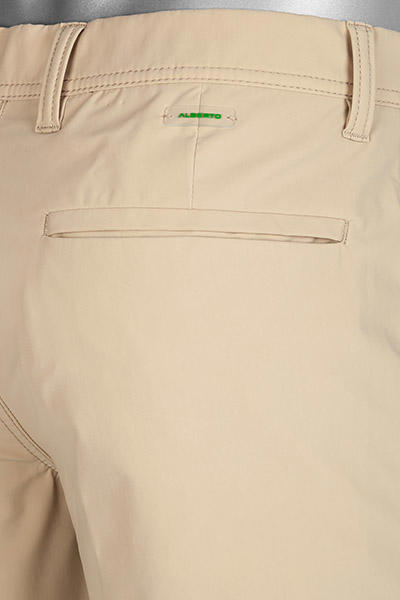 Die Golfshorts Earnie von ALBERTO bestechen durch ihre elegante beige Farbgebung, die jedem Outfit eine stilvolle Note verleiht. Das hochwertige Mikrofasergewebe mit Stretch-Anteil sorgt für ein angenehmes Tragegefühl und maximale Bewegungsfreiheit auf dem Golfplatz. Dank ihrer wasser- und schmutzabweisenden Eigenschaften sowie dem integrierten UV-Schutz sind sie perfekt für den sportlichen Einsatz geeignet. Praktische Details wie seitliche Eingrifftaschen und Antirutsch-Tapes im Bund unterstreichen die Funktionalität dieser Shorts. ALBERTO steht seit über einem Jahrhundert für Innovation im Hosenbereich und verbindet Tradition mit technischer Präzision.Unser Tipp: Kombinieren Sie die Shorts mit einem weißen Poloshirt und beigen Golfschuhen für einen harmonischen Look auf dem Grün.