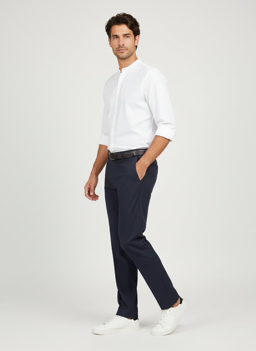 Die großzügige Fußweite von etwa 45 Zentimetern verleiht dieser Hose eine entspannte, moderne Silhouette ohne dabei an Eleganz einzubüßen. Der innovative Wool-Mix aus 55 % Wolle, 41 % Polyester und 4 % Elasthan bietet atmungsaktiven Tragekomfort und bemerkenswerte Formstabilität, während die Elasthanbeimischung für natürliche Bewegungsfreiheit sorgt. Das Modell Luis verbindet mühelose Alltagstauglichkeit mit subtiler Stilsicherheit – ideal für Business-Casual bis Smart-Casual Kombinationen. Praktische seitliche Einschubtaschen und geknöpfte Gesäßtaschen mit Lasche runden die durchdachte Ausstattung ab. Alberto perfektioniert seit über 100 Jahren die Ingenieurskunst im Hosenbereich; die maschinenwaschbare Verarbeitung und OEKO-TEX-Zertifizierung unterstreichen das Mönchengladbacher Qualitätsverständnis.Unser Tipp: Kombinieren Sie die navy Wide Fit mit einem cremefarbenen Leinenhemd und Wildledersneakern für einen mühelosen Frühjahrs-Look mit zeitloser Wirkung.