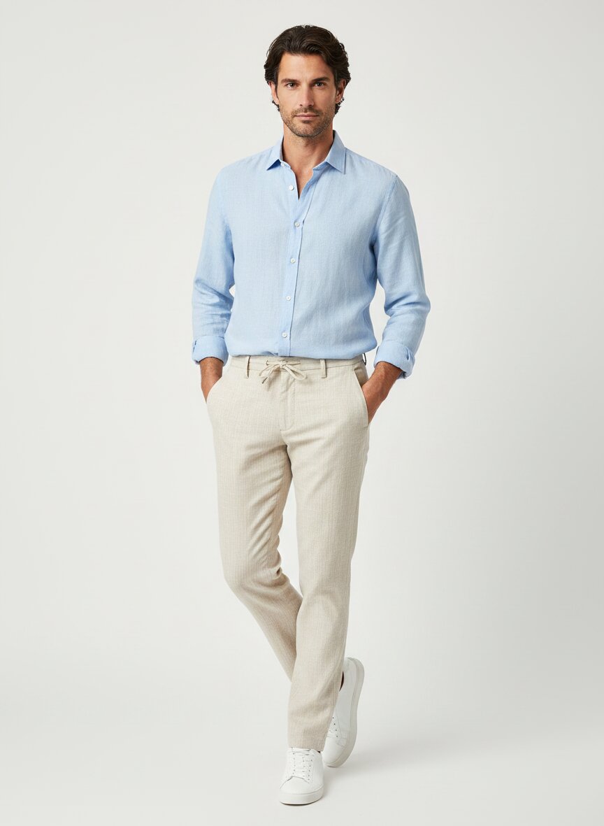Hose aus sommerlichem Baumwoll-Leinen Stretch mit elastischem Bundkomfort